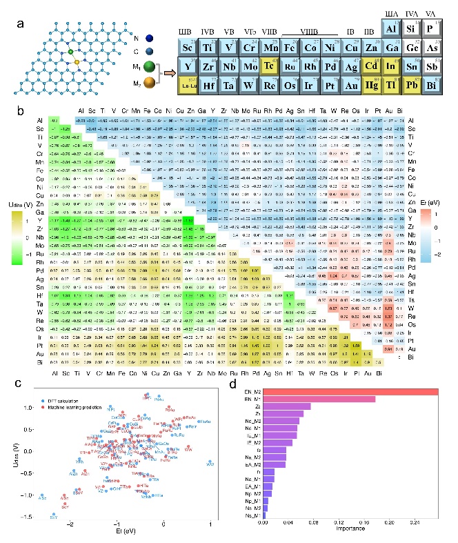 双原子催化剂因具有较高的金属负载量和复杂灵活的活性位点,从而可以获得更好的催化性能,然而双吸附位点与各中间体之间复杂的吸附态也为催化机制的理解和筛选带来了巨大的挑战。因此,深入探索中间体的吸附结构、电子结构以及在双金属协同作用下如何实现关键中间体吸附能解耦并打破性标度关系,成为理解双原子催化剂催化机制的关键。该团队通过高通量计算和机器学习探讨了465种石墨烯基双原子催化剂的稳定性、二氧化碳吸附与活化以及电催化机制。研究表明,双原子催化剂对中间体的吸附结构呈现多样性,其中关键中间体* CO和*CHO分别有5种,从*CO到* CHO存在11种结构流向,而筛选出的14种能够打破吸附线性关系的催化剂并非来自某一个特定的结构流动方向。这项工作突破了双原子催化剂打破线性标度关系的传统认识。另外,研究还发现双原子催化剂在电子传输过程所具有的独立双向通道比单一原子通道更具调节的灵活性,为催化剂的设计提供了新的思路。上述成果以题为“Breaking the scaling relations of effective CO2 electrochemical reduction in diatomic catalysts by adjusting the flow direction of intermediate structures”(双原子催化剂通过调节中间体结构流向突破CO2电化学还原的线性标度关系)发表在《Chemical Science》。