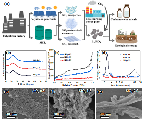 相关工作以“Synthesis of highly stable Li4SiO4-based CO2 sorbents using polysilicon by-product SiCl4 as raw material(https://doi.org/10.1016/j.cej.2024.157055)” 为题发表在 Chemical Engineering Journal(中科院一区TOP期刊,IF = 13.3)上,论文作者第一作者郭爱霞,通讯作者黄亮副教授和于锋教授。