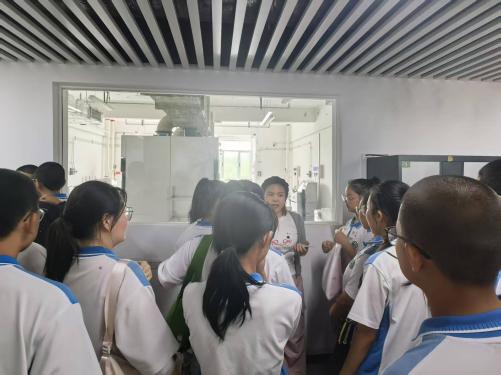 活动中,中学生们近距离观摩实验操作,参与互动体验,并与讲解教师展开交流。一位学生表示:“这次研学让我对化学有了全新的认识,实验室里的仪器和反应现象就像‘魔法’,未来我也想用科学知识解决实际问题。”
