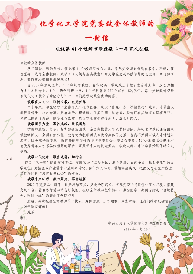 英国正版365党委致全体教师的一封信-庆祝第41个教师节暨致敬二十年育人征程