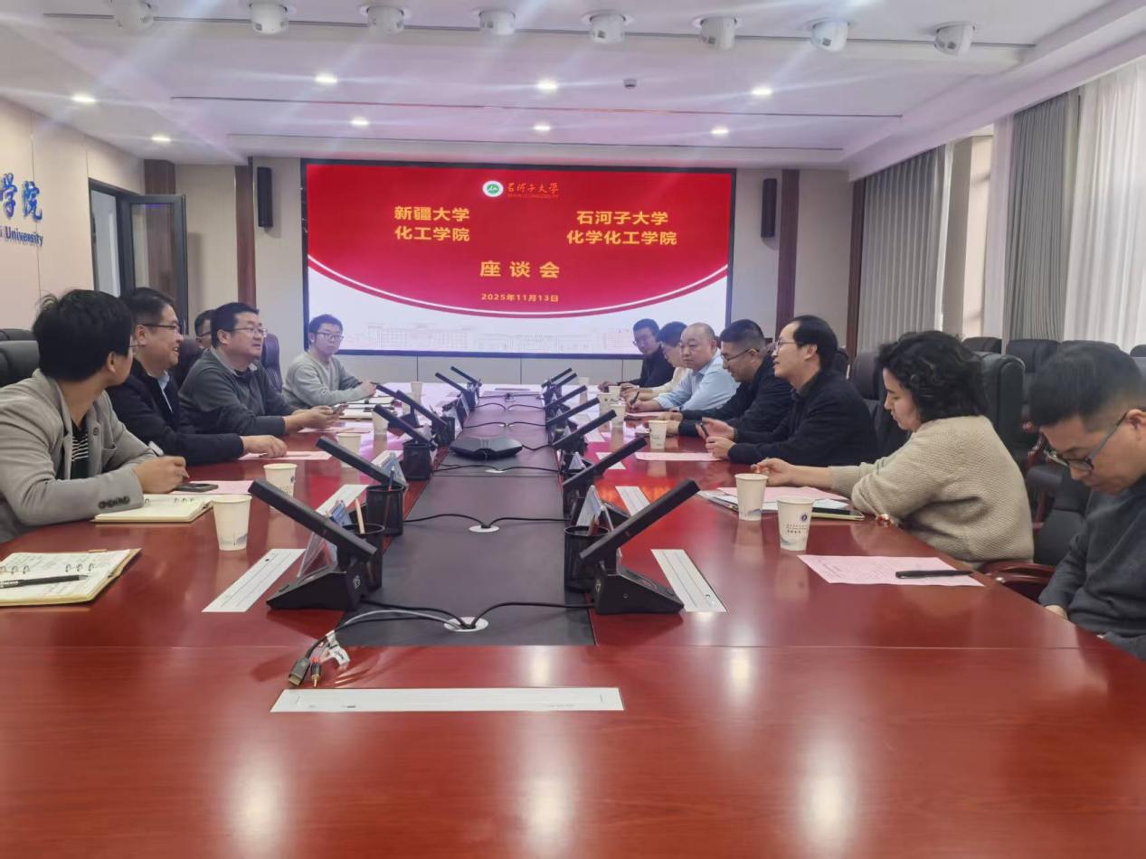 11月13日下午,新疆大学化工学院党委书记刘岸杰一行7人来英国正版365开展调研交流。座谈会在石河子大学逸夫楼225会议室举行,由英国正版365党委书记贾鑫主持。