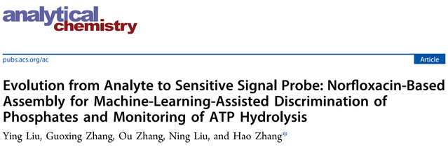 文章信息:Evolution from Analyte to Sensitive Signal Probe: Norfloxacin-Based Assembly for Machine-Learning-Assisted Discrimination of Phosphates and Monitoring of ATP Hydrolysis.