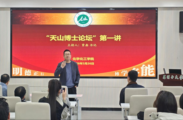 论坛首讲由石河子大学化学化工学院党委书记贾鑫主持。他表示,“天山博士论坛”是加强青年人才队伍建设的重要抓手,旨在搭建一个开放包容、常态化的学术交流平台。贾鑫书记鼓励青年教师充分利用这一平台,主动交流、积极互动,在跨学科碰撞中激发创新灵感,探索科研新方向。他特别提到,希望青年教师打破学科壁垒,加强合作,也欢迎兄弟院校的师生积极参与,共同打造多学科交叉融合的学术生态,形成协同创新的良好氛围。