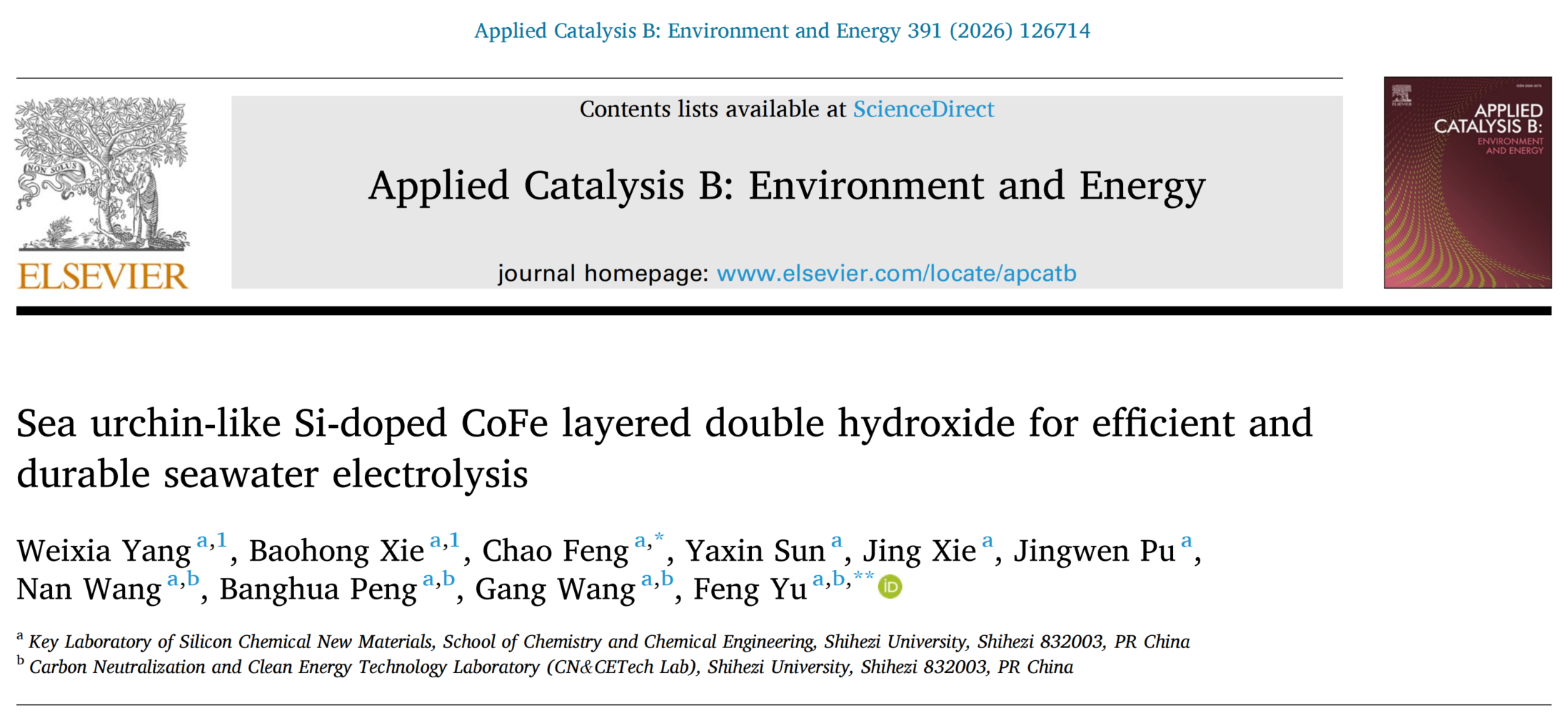 近日,我校英国正版365于锋教授、冯超副教授在《Applied Catalysis B: Environment and Energy》期刊上发表海水电解领域的重要研究成果。论文第一作者是英国正版365硕士研究生杨维霞、谢宝鸿,通讯作者是冯超副教授、于锋教授。
